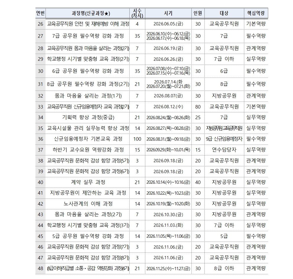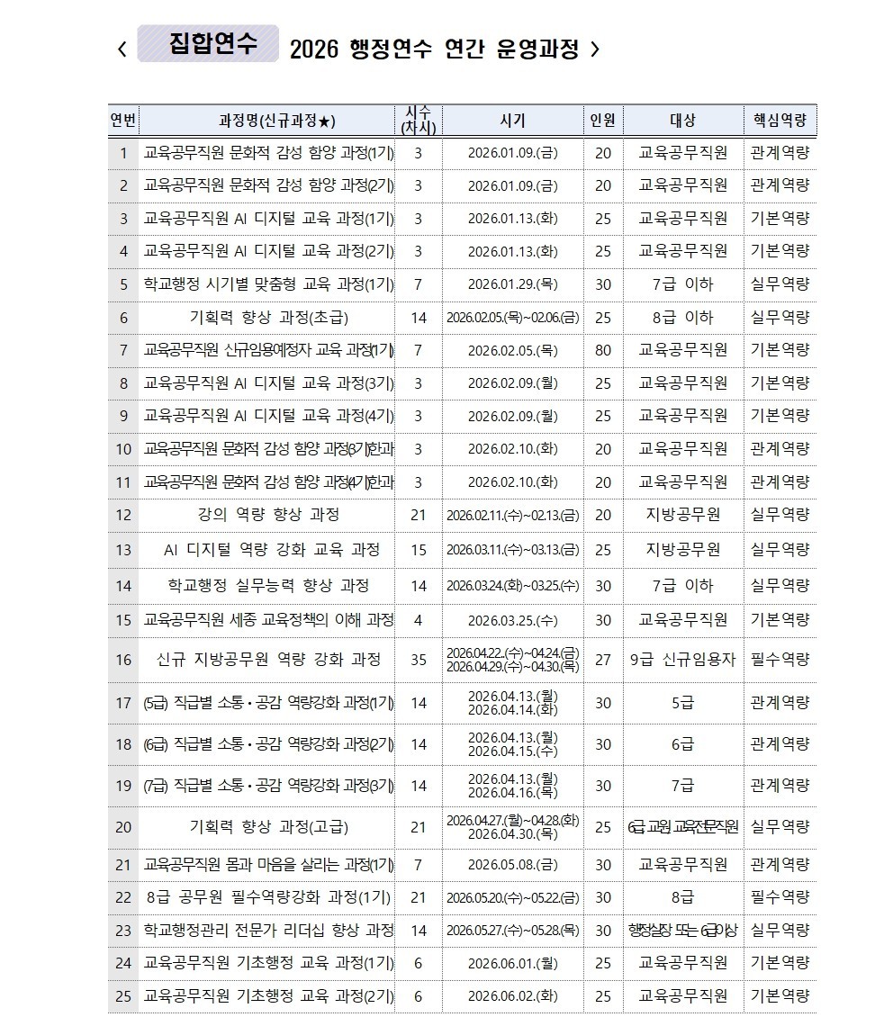 2026년 행정연수 일정
